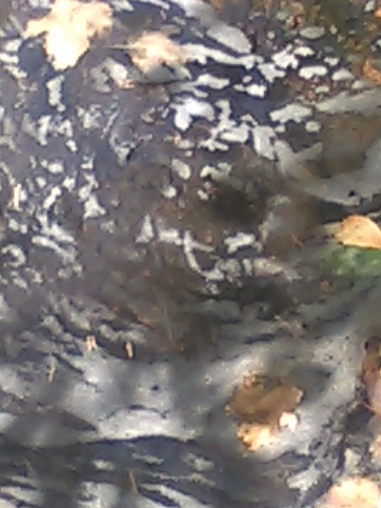 This water was perfectly clear when I first got there. And there were 3 little baby fishies trying to survive right where those pollutants gathered. I called them Big Swimmy, Little Swimmy, and Baby Swimmy. They would come out soon after I would sit by the creek. I love to watch them.