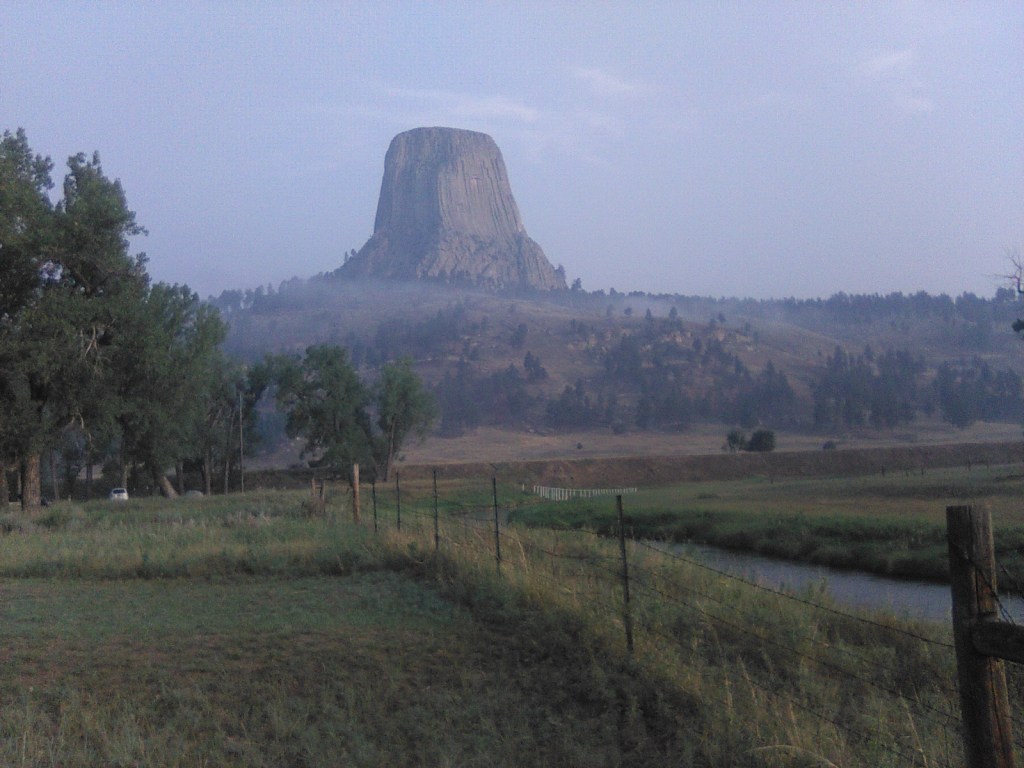 The image on the left is a headstone in an Indiana cemetery. Bear Lodge or the Tower, is on the right.